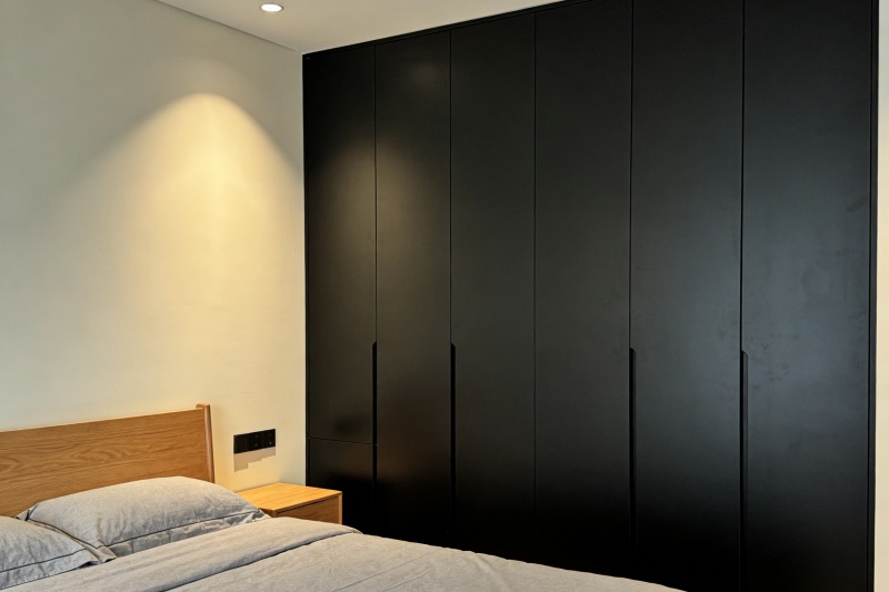 A: Este armario de dormitorio de alta gama, fabricado en madera contrachapada negra mate, es compatible con una variedad de estilos de dormitorio, incluidos el moderno, el minimalista, el de lujo discreto y otros estilos.