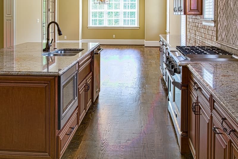 La sensación general de una cocina no solo se basa en los propios gabinetes, sino también en ciertos herrajes y la distribución. Optar por un diseño de gabinetes de roble con tiradores modernos en los cajones le dará a toda la cocina un aspecto más moderno, un estilo muy popular actualmente.
