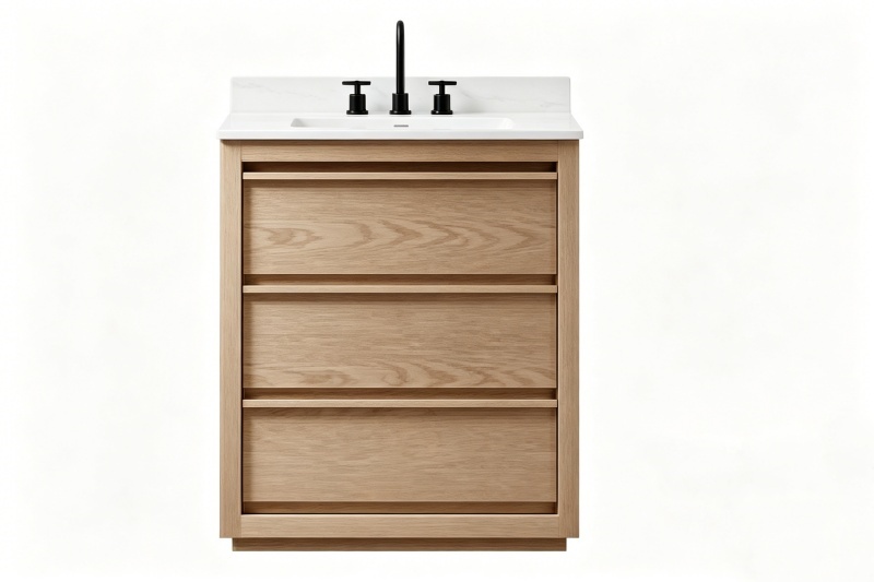 A: Ambas opciones son adecuadas para muebles de baño; puedes elegir según tu presupuesto. El roble macizo tiene un precio más elevado, pero una vida útil más larga. La chapa de roble ofrece una excelente relación calidad-precio, un rendimiento estable y gran practicidad. Elige roble macizo para un aspecto elegante y chapa para una mayor rentabilidad.