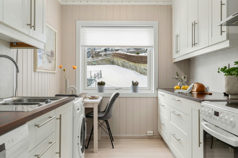 Los gabinetes de cocina con marco blanco y encimeras blancas son una opción infalible, ya que le dan a toda la cocina un aspecto impecable. Combínalos con un fregadero de acero inoxidable y obtendrás un diseño elegante y moderno, muy popular actualmente. Nuestros gabinetes de cocina blancos están disponibles en materiales como roble blanco, MDF, contrachapado y aglomerado, para que puedas elegir la opción que mejor se adapte a tu presupuesto.