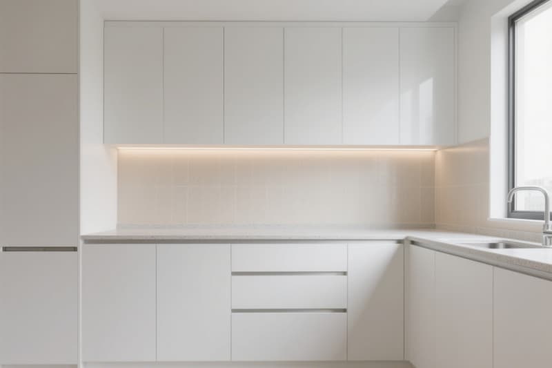 En un entorno de cocina donde las actividades diarias son frecuentes, los gabinetes deben abrirse y cerrarse constantemente y se colocan elementos pesados sobre ellos, la estabilidad y durabilidad del marco de roble blanco se vuelven particularmente importantes, ahorrando a los usuarios la molestia de reemplazar los gabinetes con frecuencia.